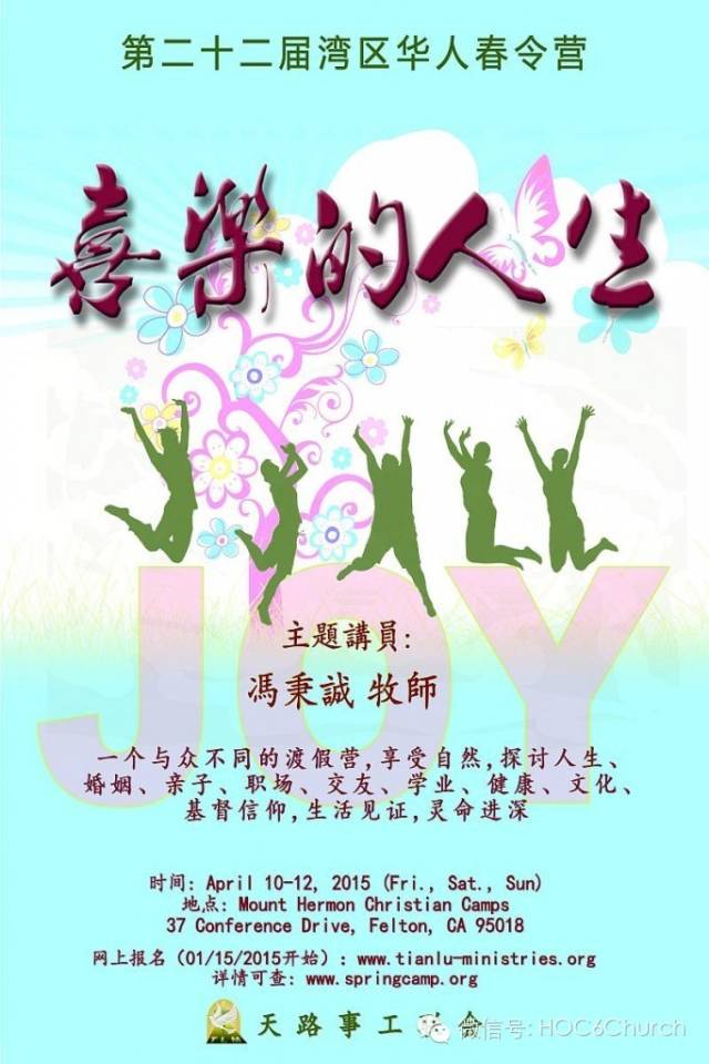 亲爱的朋友, 你是否思想过人生的真正意义?我们从哪里来、到哪里去、为什么活着?上帝真的存在吗?耶稣是谁?为什么世界上有如此多的人信靠他?耶稣会对你的生命有帮助吗?你希望你个人或家人的生命、生活状态得到改进吗?湾区华人春令营将为您提供一个解答和实践的机会。这次营会将借着主题讲员冯秉诚牧师的精辟讲解,基督徒的生命见证,以及众多专题讲员的信息,同龄人的生命分享,让每一个来到营地的人满载而归,得到更丰盛的生命。除了灵命的收获,营友们还可以享受丰富的家庭和休闲活动。营会的儿童、青少年活动,丰富多彩,深受孩子们的喜爱。这次营会一定会成为你难以忘怀的一次渡假记忆。